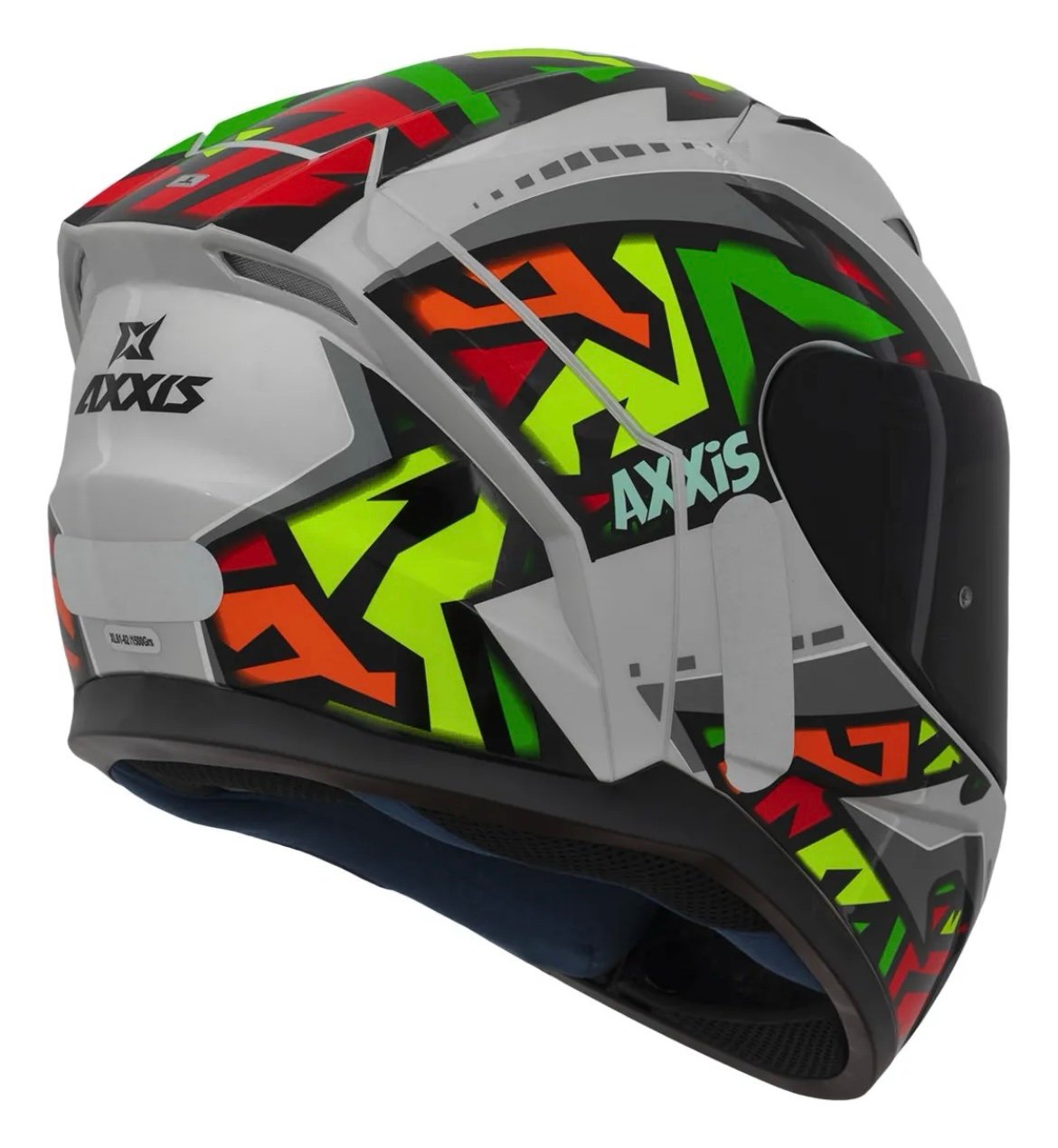O capacete Axxis é um modelo integral aerodinâmico em HIRP, oferecendo proteção de alto nível com uma combinação de polímeros.