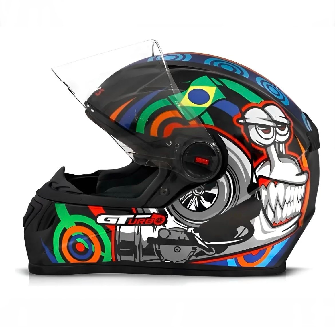 O Capacete GT Turbo é a escolha perfeita para quem busca segurança e estilo nas suas aventuras urbanas. Com um design moderno, o casco pintado em preto brilhante e adesivagem de um caracol turbo não só proporciona um visual legal, como também garante durabilidade e proteção.
