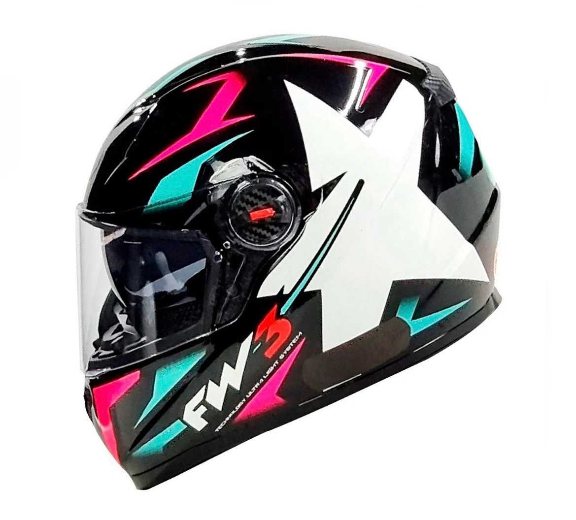 Capacete FW3 GTX Star preto, tiffany e rosa