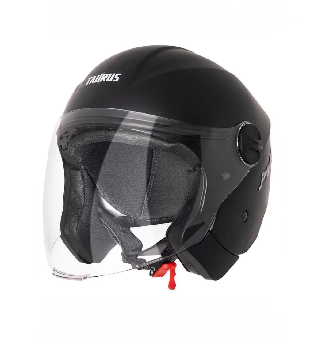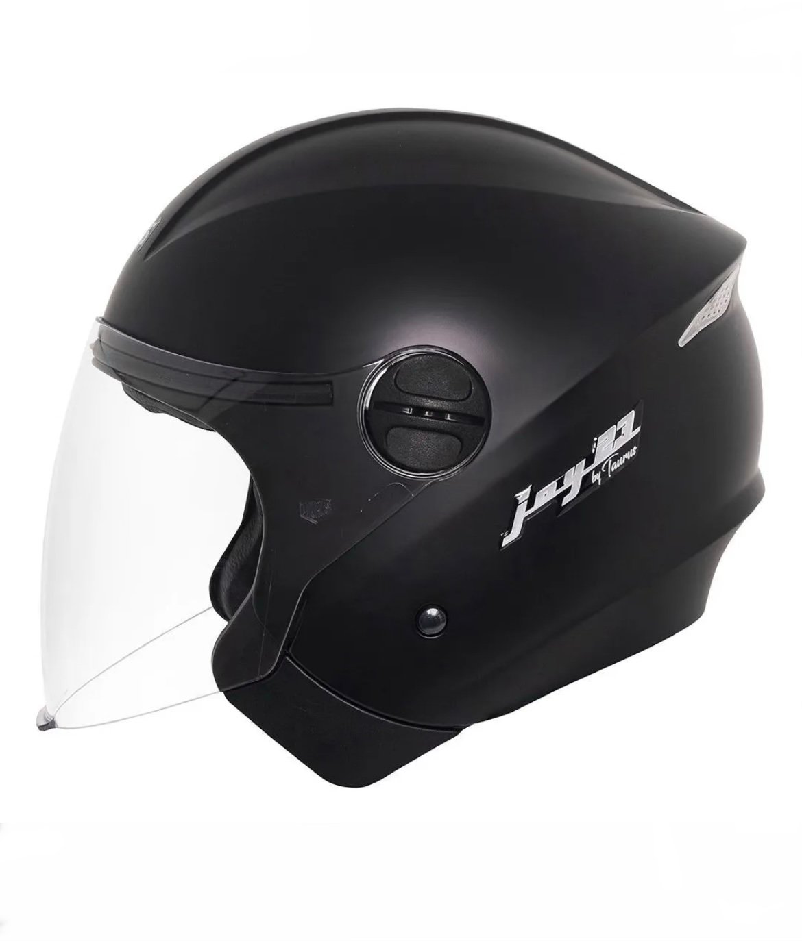 Capacete aberto, na cor preta. Leve, seguro e confortável.