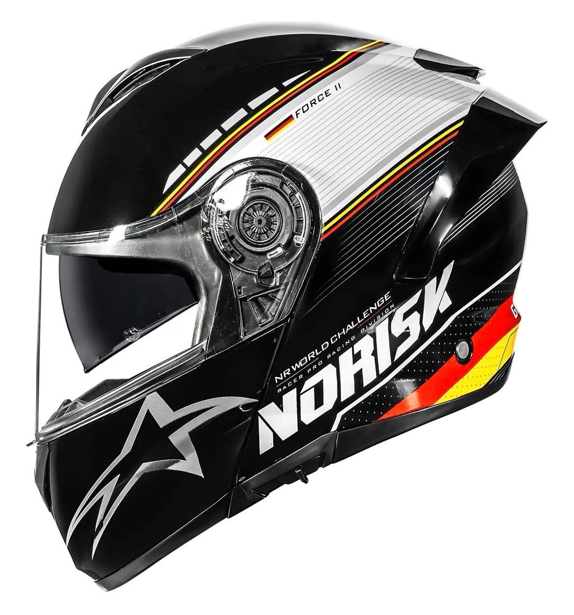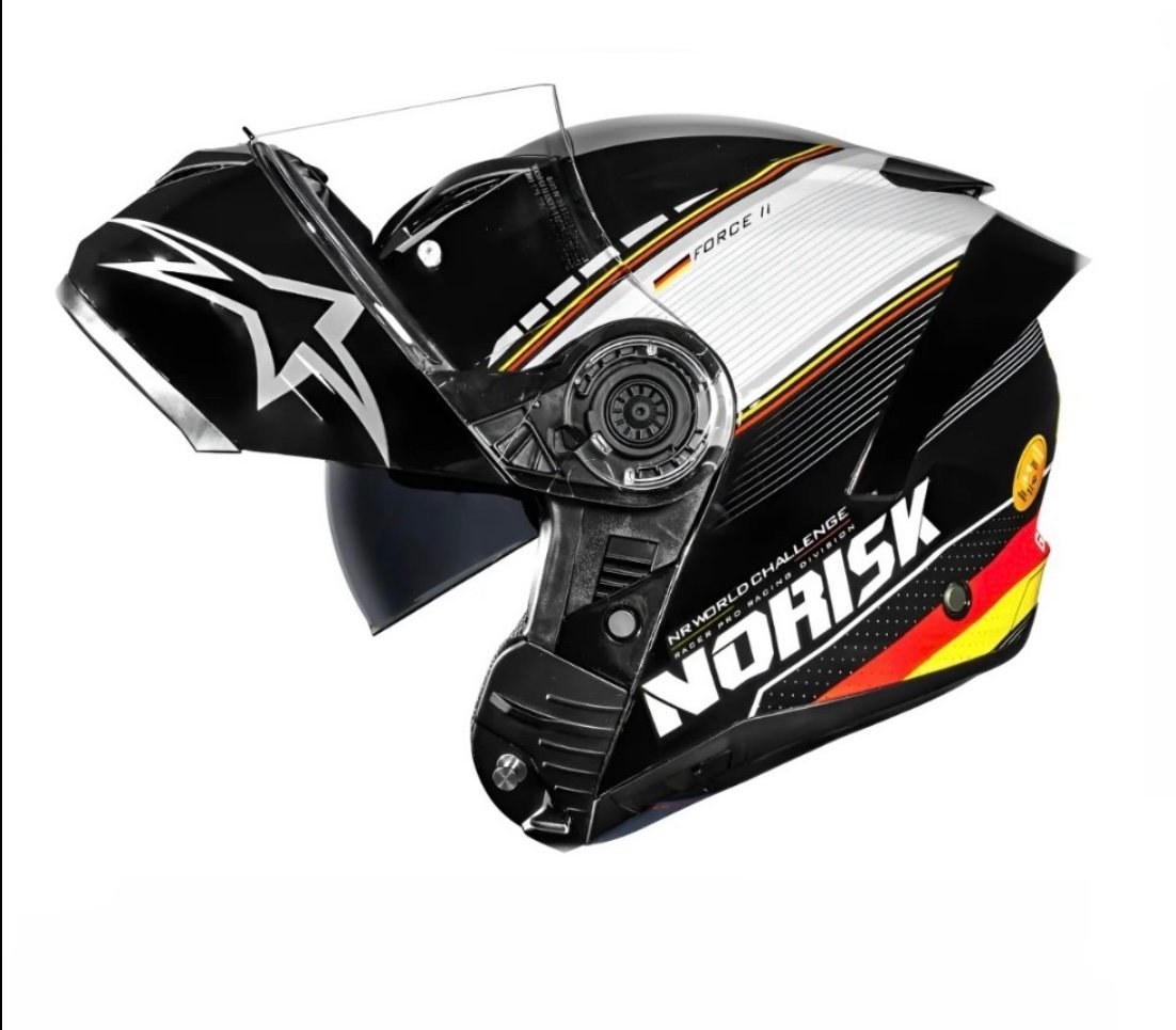 O NORISK FORCE II é feito para quem passa muito tempo com a moto e precisa de um capacete equilibrado, ou seja, com distribuição de peso ideal. A viseira desse capacete conta com 5 estágios de abertura, e possui troca rápida de viseira. Com excelente campo de visão e viseira de policarbonato com 2,2 mm resistente a riscos e marcas, também oferece óculos interno escuro com proteção UV.